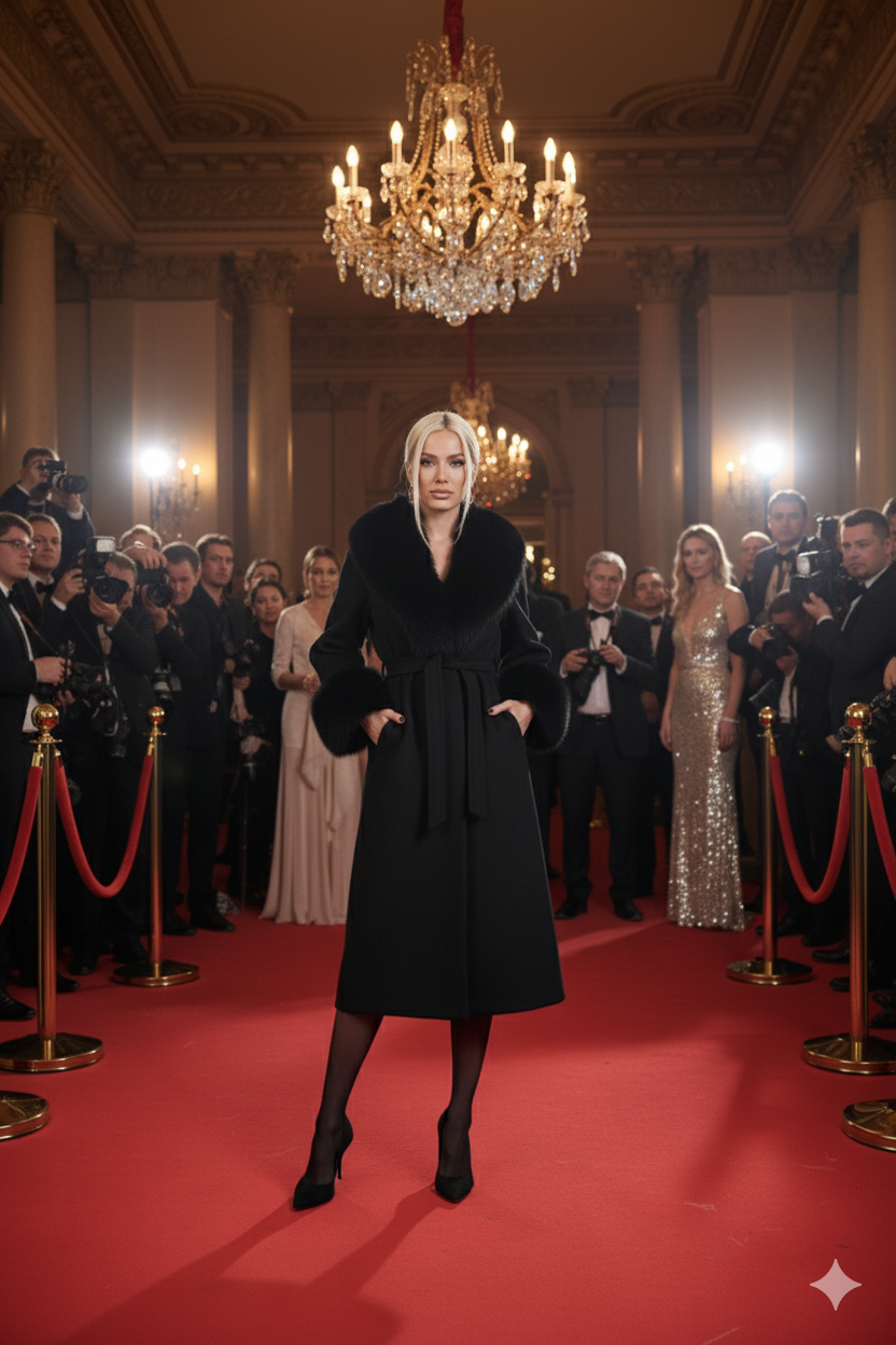 Elegant Wool-Blend Maxi Coat with Belt - Plum