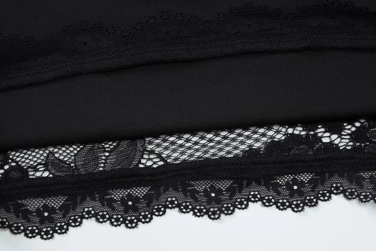 A delicate blend of femininity and allure, this slim-fit crop top features a square neckline, floral lace patchwork, and sheer sleeves. Crafted from a refined polyamide-spandex blend, it’s the perfect statement piece for parties and summer festivals.