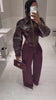 The deep burgundy hue is rich and unique, the glossy finish elevates any outfit, and the cropped length pairs flawlessly with high-waisted skirts. Total head-turner!