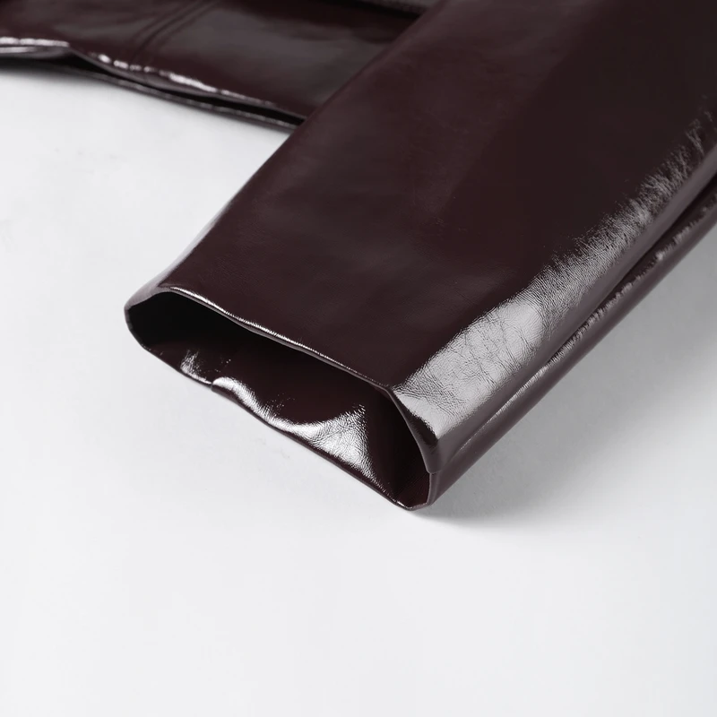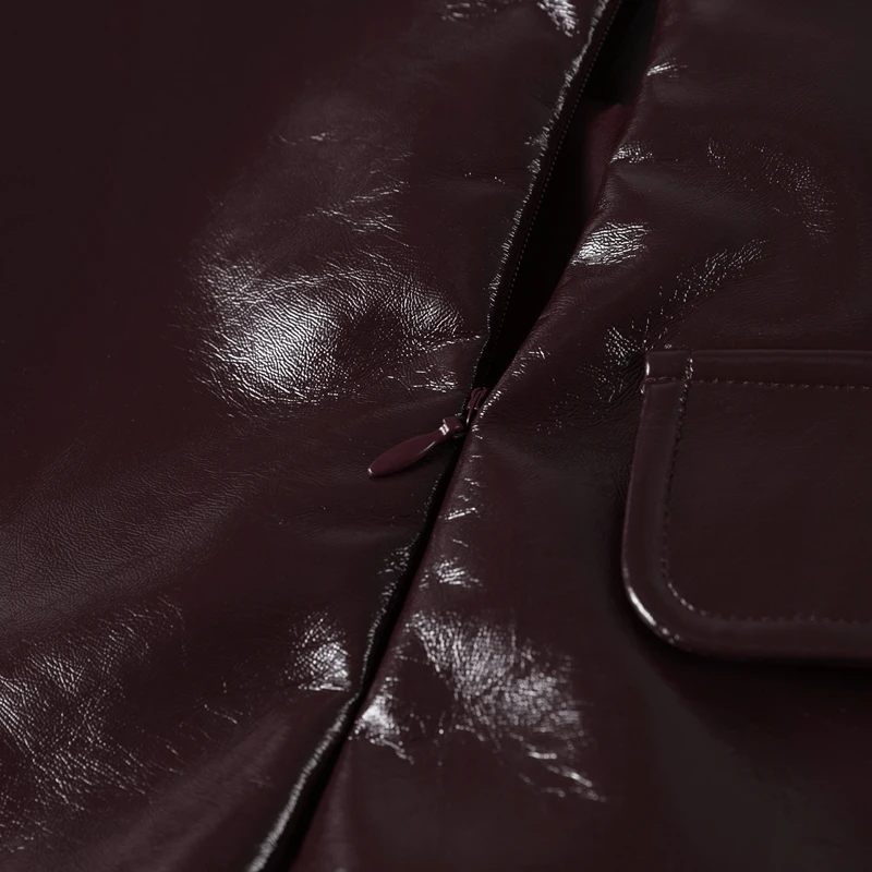 Setzen Sie ein modisches Statement mit diesem zweiteiligen Set aus Kunstleder. Es besteht aus einer lässig geschnittenen, einreihigen Jacke und einem figurbetonten Minirock und vereint gekonnt lässigen Charme mit urbaner Eleganz.