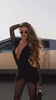 This elegant jumpsuit features a deep V neckline, sheer lace patchwork, and ruched detailing for a sleek, high-waisted silhouette. Made from premium stretch fabric for a flattering fit—perfect for evening events and upscale parties.